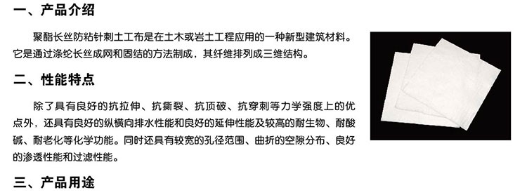 長絲土工布特性: